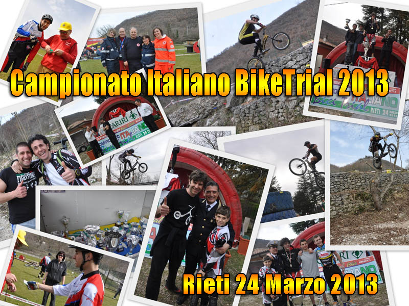 Anche il 2013 ha vissuto la ripartenza del Campionato Italiano Uisp/Biu Bike Trial. L’onore di iniziare le manifestazioni agonistiche è stato di Fabio Crescenzi e del suo staff che hanno organizzato la gara presso il centro polisportivo a Vazia alla periferia di Rieti.