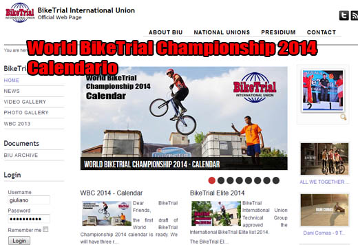 Sul sito ufficiale BIU www.biketrial.site trovate la bozza del Calendario del Campionato Mondiale BikeTrial 2014, le date saranno 3, in tre settimane di seguito al fine di agevolare la partecipazione di tutti. Ecco le date: