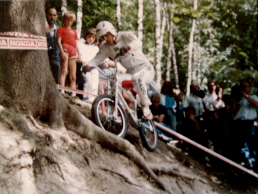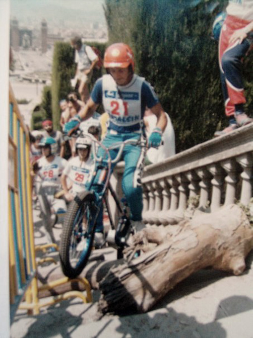 Ero già in possesso di una moto da Trial; passione che mi fu trasmessa da mio padre, praticante e grande appassionato, ma preferivo andare in bicicletta, cercando di emulare i grandi atleti che con le moto superavano ostacoli impensabili. In occasione di una gara di Trial moto, vidi il campione europeo di Trialsin, lo spagnolo Andreu Codina: saliva da vasche colme d’acqua, girando e riscendendo senza mai cadere per poi salire su una scala: incredibile.