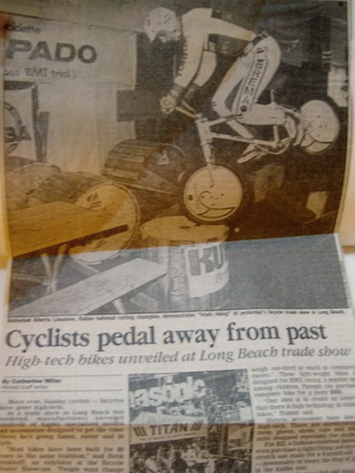 Con torpado raggiunsi i miei massimi livelli, vincendo una Coppa del Mondo, arrivando secondo nel Campionato del Mondo e vincendo 2 titoli italiani e 2 coppe italia. Feci inoltre spettacoli in tutta Italia e anche all’estero. In particolare nel gennaio del 1986 andai a Los Angeles per presentare e diffondere questo sport, che in america non era ancora diffuso. Fu un successo, con interviste e uscite su vari giornali molto importanti. L’estate successiva poi due piloti californiani parteciparono per la prima volta al campionato del mondo di Trialsin. La bici era strepitosa, leggera e resistente. La mia in particolare montava già dei pezzi in titanio e degli accessori molto leggeri (si parla comunque di circa 11 kg). Ma la cosa incredibile era che con quella bici facevo cose che ancora oggi mi stupiscono, come per esempio la salita verticale di un muro alto 130 cm.