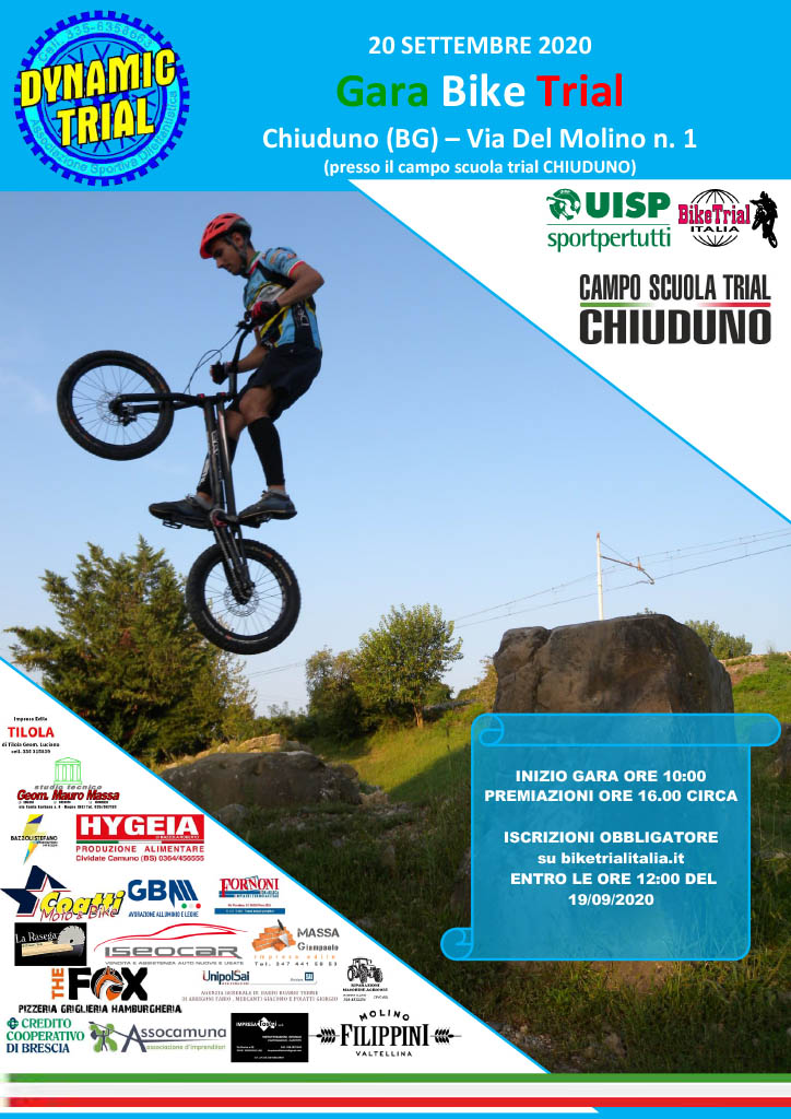La ASD Dynamic Trial è al lavoro per la preparazione della seconda prova del Campionato Nazionale BikeTrial 2020 che si svolgerà a Chiuduno (BG) il 20 Settembre 2020 con partenza alle ore 10:00.